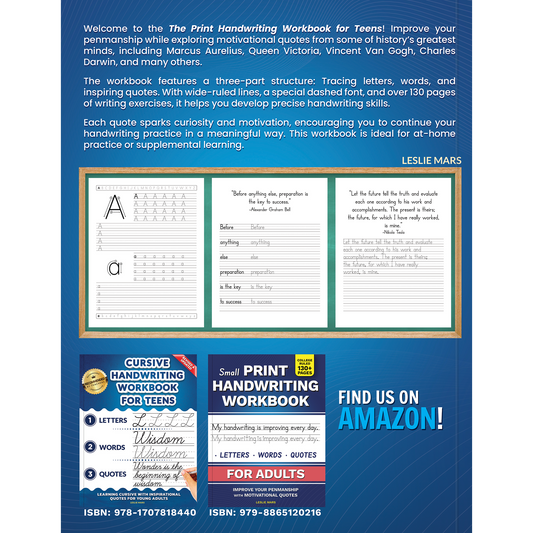 The Print Handwriting Workbook for Teens: Improve your Penmanship and Writing Skills with Motivational & Inspirational Quotes for Young Adults